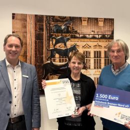 Für TURA nahmen Präsident Gerd Schweizer und Projektinitiatorin Rita Immisch den Preis entgegen, der mit 1.500 Euro Preisgeld verbunden ist. Ausgezeichnet wurde das Projekt „Mentalpfad“ – ein rund drei Kilometer langer Parcours im Bremer Westen, der körperliche Bewegung mit geistigen Herausforderungen kombiniert. An vierzehn fest installierten Stationen werden Aufgaben gestellt, die zum Mitdenken und Mitbewegen einladen.