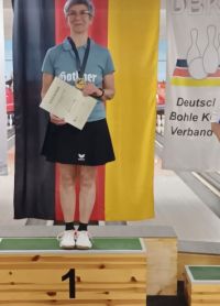 Im Kampf um den nationalen Titel gewann sie in überlegener Manier den Deutschen Meistertitel in der Disziplin „Dreibahnenwettbewerb“ (Bohle, Schere und Asphalt) und durfte als Lohn für ihren überzeugenden Auftritt die Goldmedaille und die dazugehörige Urkunde mit in die Hansestadt nehmen.