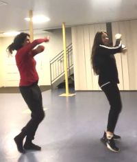 Laura fängt an mit einer Choreografie, langsam und ohne Musik zum Üben: