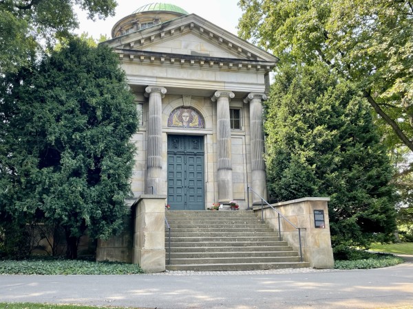 Die nächste Station war das imposante Kolumbarium am Eingang des Riensberger Friedhofs.