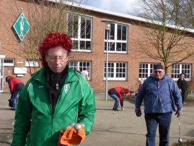 Leicht verspätet veranstaltete die Boulegruppe von Tura ihr zweites Gröpelinger Petanque-Faschingsturnier. Eine Kostümierung war erwünscht. Turnierleiter Manfred Peper begrüßte 24 Teilnehmerinnen und Teilnehmer aus dem Weser-Ems-Raum, die vier Runden auf zwölf Bahnen des "Boulodroms" am Bert-Trautmann-Platz spielten.