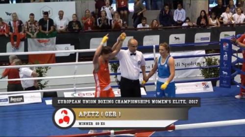 Der EU-Titel ist der zweite große internationale Erfolg, nachdem Apetz bei den Weltmeisterschaften in Astana/Kasachstan im Mai des vergangenen Jahres als erste deutsche Boxerin eine Medaille holte.