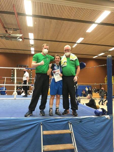 Trainer Klaus Becker zeigte sich mit seiner Boxerin sehr zufrieden: "Luca Maria hat immer versucht die Vorgaben von mir umzusetzen, das war mit ein Schlüssel zum überraschenden Erfolg."