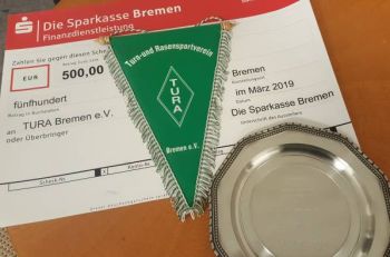 Die Bremer Sportjugend und die Die Sparkasse Bremen haben TURA Bremen den Ehrenpreis für hervorragende Jugendarbeit im Jahr 2018 überreicht, verbunden mit einem Spendenscheck.