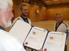 Die Urkunden wurden im Auftrag der DTU von dem Landesverbandsvorsitzenden Roland Klein überreicht. In seiner Laudatio hob Klein die Leistungen und das besondere Engagement von Glenewinkel und Falk für ihren Sport und ihren Verein sowie ihren Einsatz als Trainer der Taekwondo-Abteilung von Tura besonders hervor.