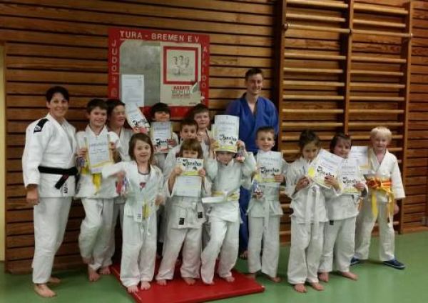 Sechs Judoka von Tura Bremen belohnten sich für ihren Trainingsaufwand mit der bestandenen Prüfung zum 8. Kyu (gelb-weiß). Can-Malik Er, Mertali Bayrak, Lia Richter, Bruno Greppmair, Tammo Stindt und Aisha Halikova legten eine fehlerfreie Prüfung ab. Auf Seiten der Prüfer gab es nichts zu beanstanden, sehr zur Freude der Trainer Timo Höwener und Petra Wittmann-Richter.