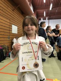 Lia Richter trat in der U 9 in der Gewichtsklasse bis 25,8 Kilogramm an. Den ersten Kampf verlor sie kurz vor Ende durch einen Haltegriff ihrer Gegnerin. Den zweiten Kampf wollte die Turanerin unbedingt gewinnen und zeigte viele Wurfansätze, die aber noch nicht für Wertungen reichten. Da es in der U9 kein "Golden Score" (Verlängerung) gab, musste bei "Unentschieden" der Kampfrichter entscheiden. Der Sieg wurde an ihre Kontrahentin gegeben. Nach dieser Enttäuschung konnte Lia Richter im dritten Kampf nichts ausrichten. Ihre Gegnerin beendete den Kampf schnell mit O-soto-otoshi und anschließendem Haltegriff. Lia nahm es sportlich und freute sich dennoch über ihren dritten Platz.