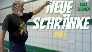 Unsere neuen Schränke für die Umkleidekabinen im Vereinszentrum sind geliefert worden. Bevor Alex und Reiner sie aufbauen, bekommen die Bänke noch einen frischen Tura-grünen Anstrich.