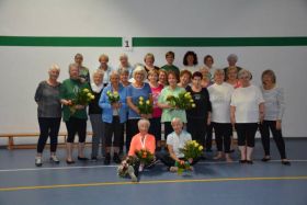 Tura zeichnete fünf Frauen für ihre langjährige Treue zur Mittwochsturngruppe aus. Foto: Jutta Ginger