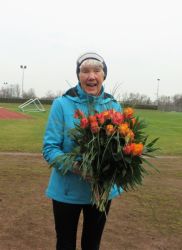 Gerda Kloke bekam als Zeichen der Dankbarkeit und Anerkennung von jedem anwesenden Teilnehmer der Walking-Gruppe von Tura eine Rose geschenkt.